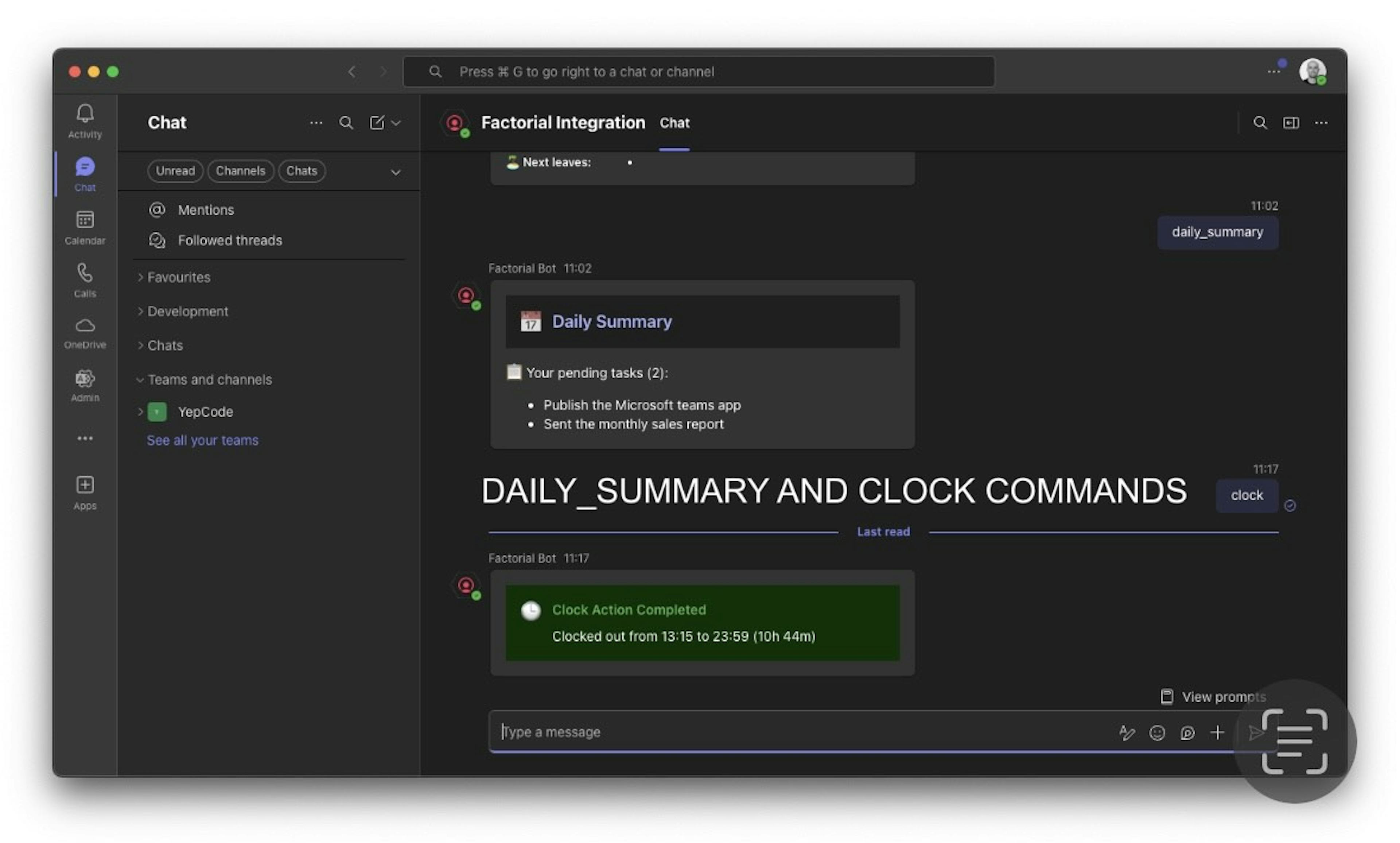 - Daily Summaries: Get comprehensive daily reports on company leaves and your pending tasks (daily_summary)